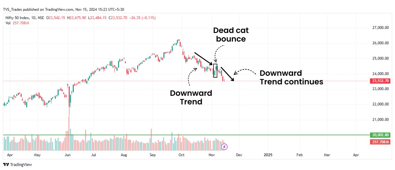 Recently, something similar happened with the Nifty 50, which analysts termed a "Dead Cat Bounce."