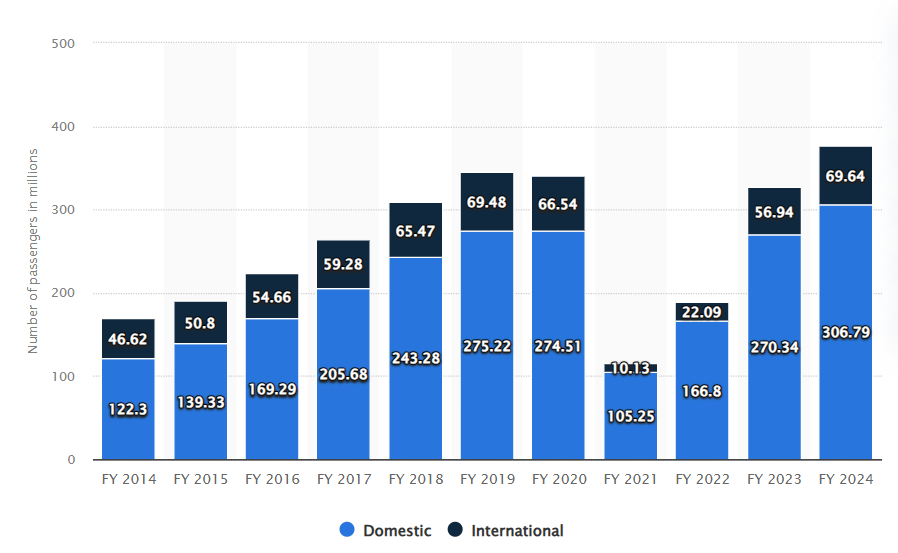 In 2013-14, only 60 million people traveled by air within the country, as flying was considered a luxury. By 2023, this number jumped to 145 million, showing how much more common air travel has become. By 2030, the number of domestic air passengers is expected to reach 300 million, driven by a growing middle class and increasing preference for air travel.
